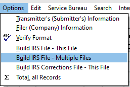Click the Options drop-down menu, and select Build IRS File - Multiple Files from the drop down menu.