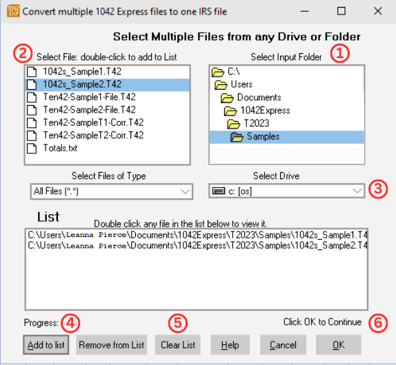6.) Once all file(s) needed are within the List box. Click OK to create the multiple IRS text file.