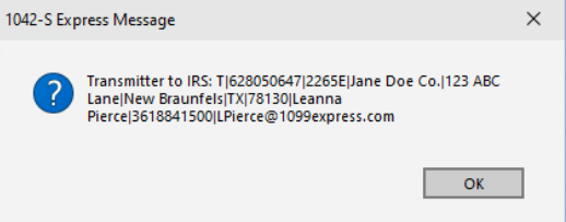 * Please be advised: The Internal Revenue Service (IRS) will reject ".T42" files submitted electronically. For successful filing, be sure to only transmit the "IRS1.txt" file format.