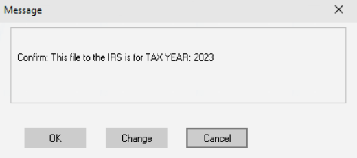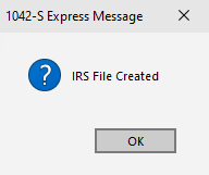 • Once the IRS text file is saved a window will appear stating the following: "IRS File Created". Click OK.