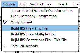 - Now that the file is good and free of errors, Save the file and select the Options menu to choose the Build IRS File- This File.