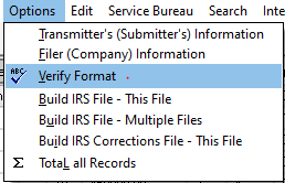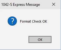 If a pop-up window appears saying "Format Check OK" then the format of the data is good. If errors do occur in this process, be sure to correct them before transmitting the file to the IRS.