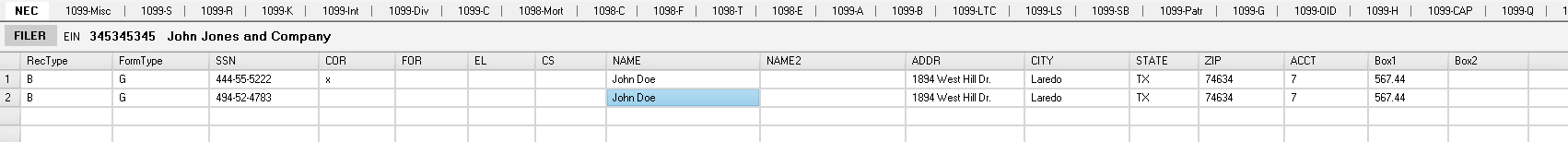 The example below illustrates a Type-2 correction for a form with an incorrect TIN.